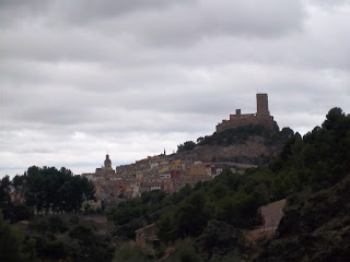 Llegamos a Biar que nos recibe sin sol, con frío y aire, o sea, mucho frío, foto a su castillo, y primer avituallamiento, unos en el bar y otros en autosuficiencia y alguno en autosuficiencia compartida (Ginés, un verdadero placer para mi, el compartir los avituallamientos).