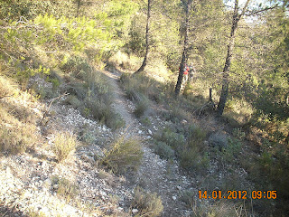El domingo, decidimos Aly, Enrique, Juan Antonio y yo, salir a las 8.30 am. a realizar, experimentalmente un ruta por la senda del Kalifa en Novelda. Salimos de casa, por el camino del rio al Clot y de ahí a la cantera de Bateig para coger la senda indicada, típica de los ciclistas BTT. La ruta nos ha gustado mucho, por una zona bastante corrible, a la que se puede incorporar la subida a La Mola.