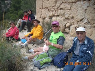 Así pues el sabado 26/05 a las 5,00 am, Enrique (repetidor de la pasada edición), Toni (vitoruner), invitado de lujo, y yo (debutantes). Faltó el gran Fausto que por estar lesionado le fue imposible venir. Desde el barrio de la Estación de Novelda, nos pusimos (para quitarnos el sueño de estas horas) en marcha hacia las antenas del Cid, buen subidón y el más duro hasta Castalla. 11 km. Y 2:30 horas tuvieron la culpa de que a las 7:30 alcanzaramos las antenas; ligero descanco observando las bonitas vistas y en descenso, hasta Rabosa, donde estaba programada parada, descando y almuerzo, un buen bocata, varias coca colas y como nó de postre ¡COCA DE POMA DE ALY!, ooohhhhh que rica.