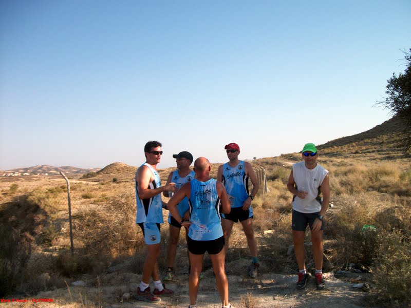 El viernes acudí a la convocatoria de los skyrunners en su presentación en “sociedad” y para ello nos prepararon un recorrido circular, de unos 9,5 Km . iniciando el ascenso por el Rio Seco o “rambla de los conejos” donde a mitad del recorrido, nada mas salir de la rambla, había un avituallamiento líquido, imprescindible para no desfallecer por deshidratación ¡qué calor!. Luego volvimos al punto de partida por pista, pasando y recreándonos en el “pulmón” de Mutxamel.